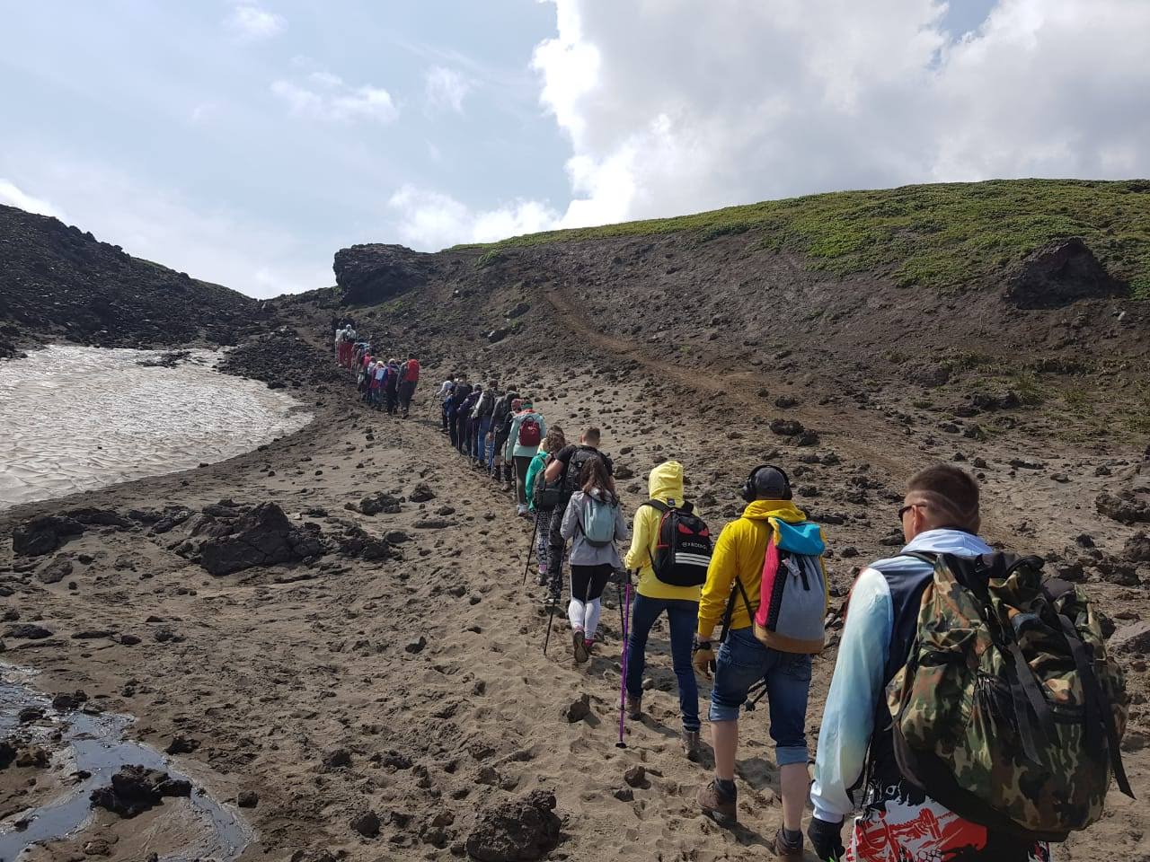 - остановка у подножия Горелого вулкана, сбор группы, начало пешего маршрута на вершину вулкана