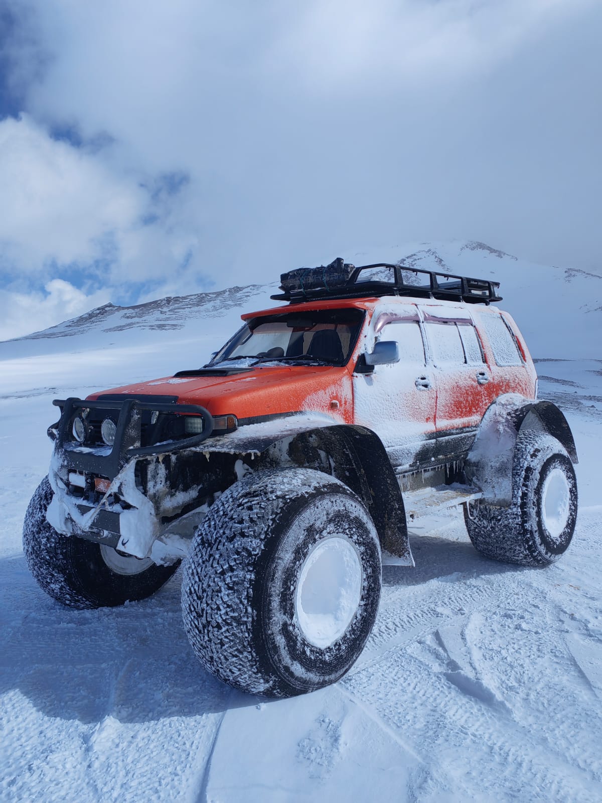 Мы приглашаем вас в незабываемое путешествие на крутом вездеходе, который не знает преград! Его огромные колеса с легкостью преодолевают любые снежные заносы, открывая доступ к самым отдаленным и живописным уголкам Камчатки даже зимой.